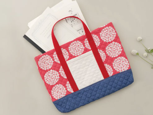 好きな生地を組み合わせることはもちろん、ポケットに刺しゅうを入れることで世界にひとつだけの素敵なアイテムになるでしょう。必要なプリントを入れたクリアファイル、楽譜やテキストといった大きめサイズのものもすっぽり入ります。